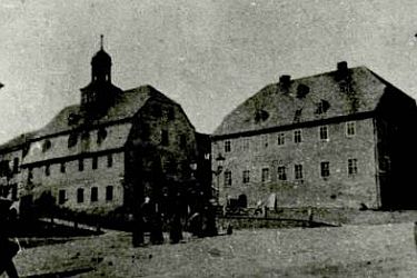 Das heutige Rathaus steht auf dem Platz des im Bild rechts zu sehenden Gebäudes.